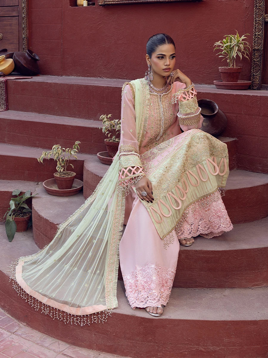 Khaddi Net Dyed Embroidered Front With Dori & Seq 1.45 Meter Approx.
