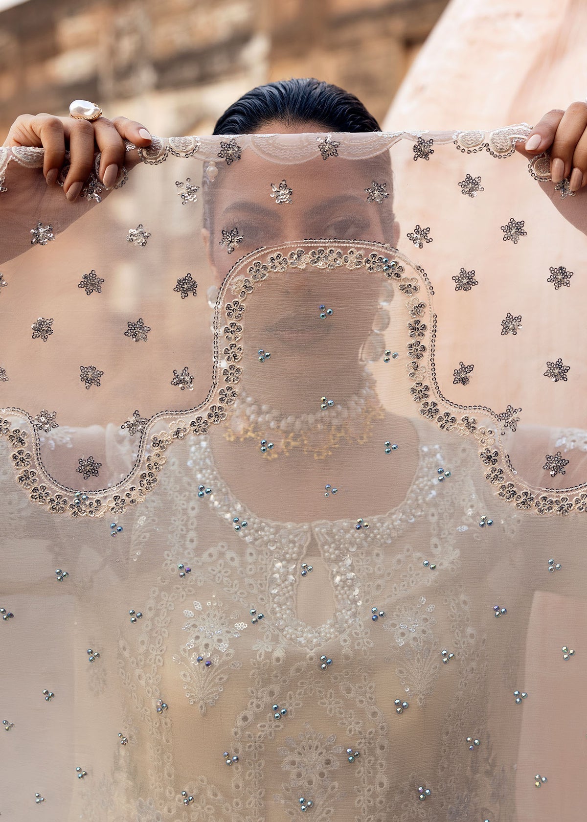Embroidered Organza Front Neckline With Luxury Hand Embellishment & Cutwork Embroidered Organza Front Center Motif
