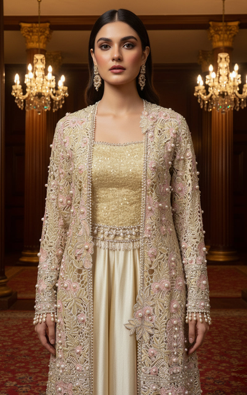 Threads and Motifs | Formal Dresses 25 | Organza Embroidered Jacket With Blouse And Skirt