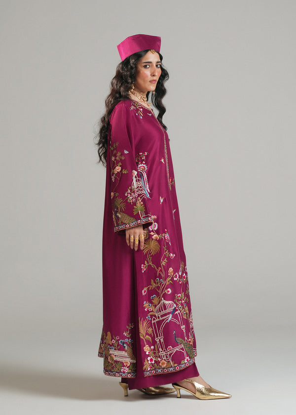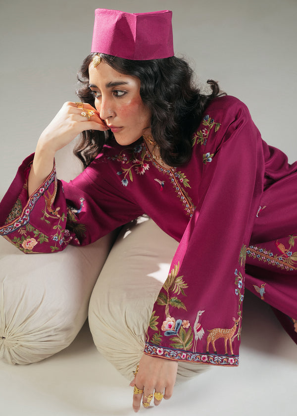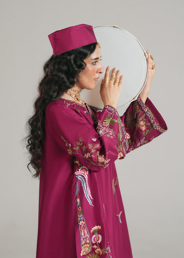 Crafted from pure raw silk, this outfit radiates timeless luxury with its natural sheen and soft texture. The embroidery takes inspiration from the Darvash old era, reimagined with a touch of modern elegance - blending heritage artistry with contemporary sophistication. A perfect balance of tradition and style, this piece is designed to make a graceful yet bold statement.