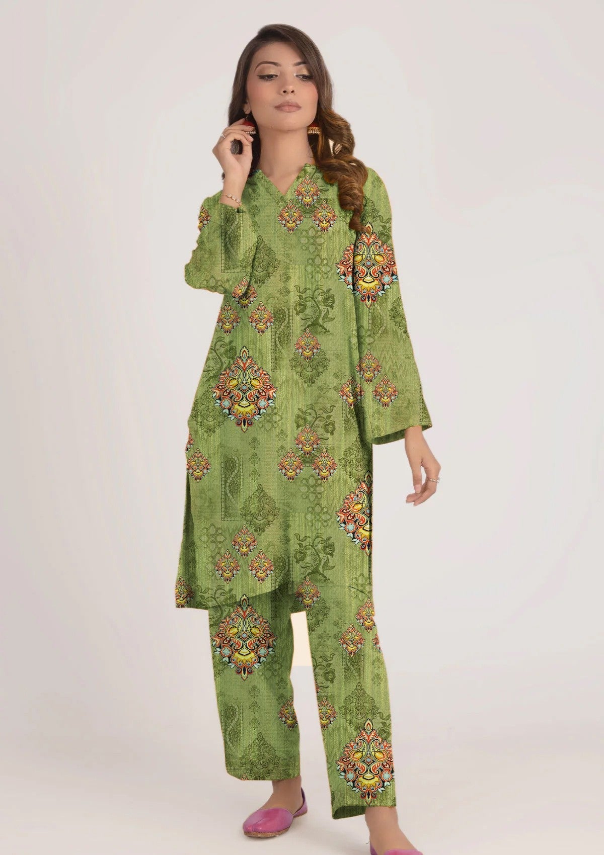 Winter Collection - Basanti - Imwaaj - Classic Linen 24 - 2 Pcs - D#07 - P Green