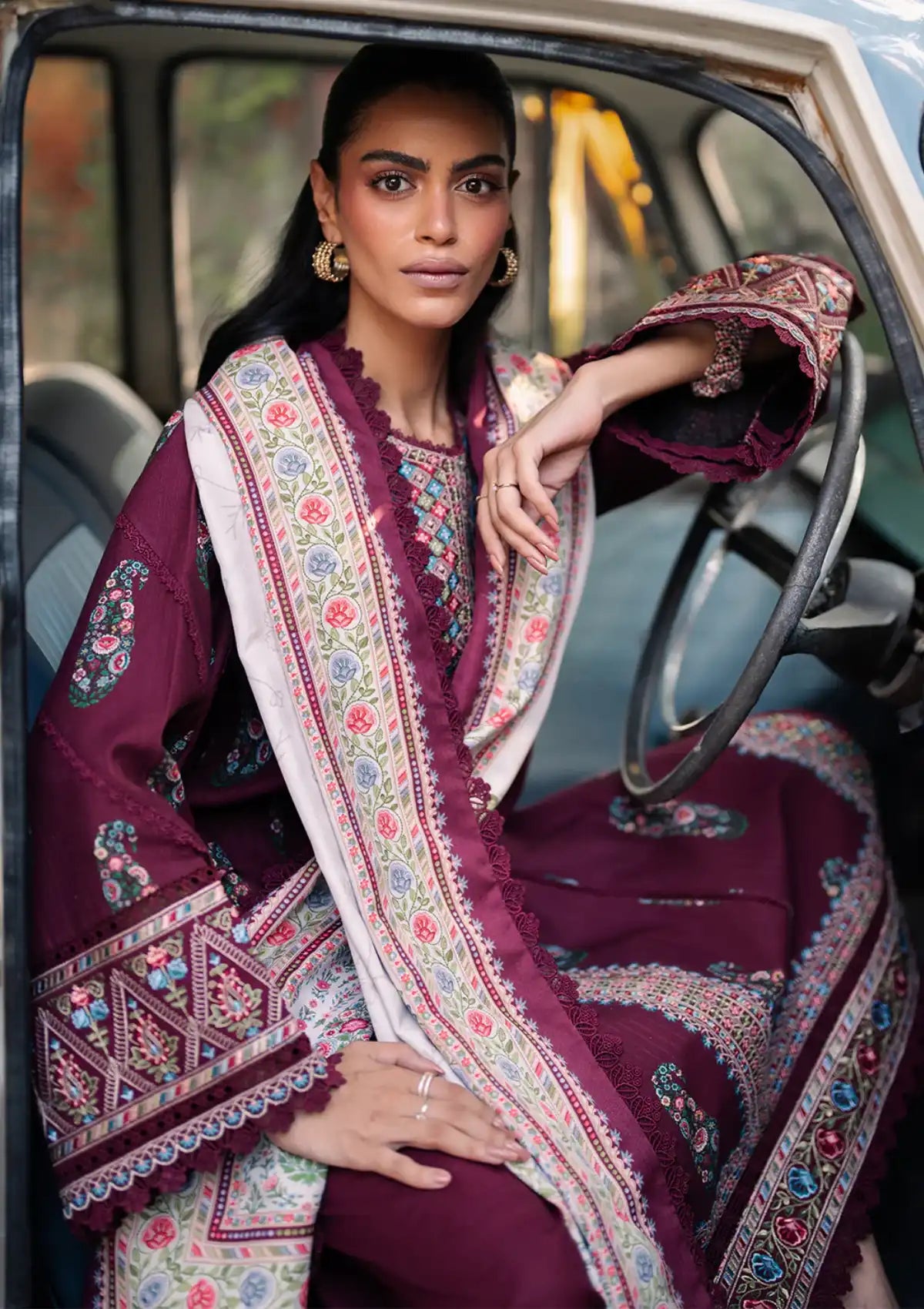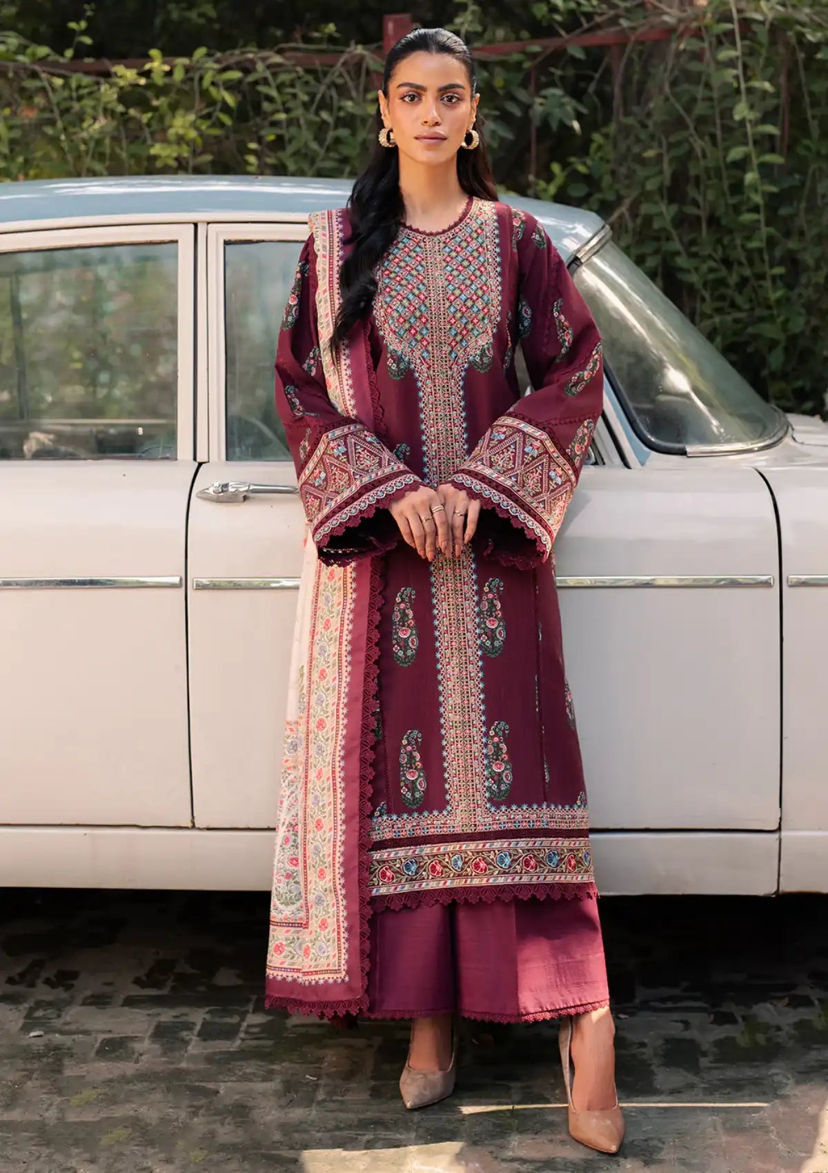 - Printed Khaddar Embroidered Front Left + Right 2 Piece