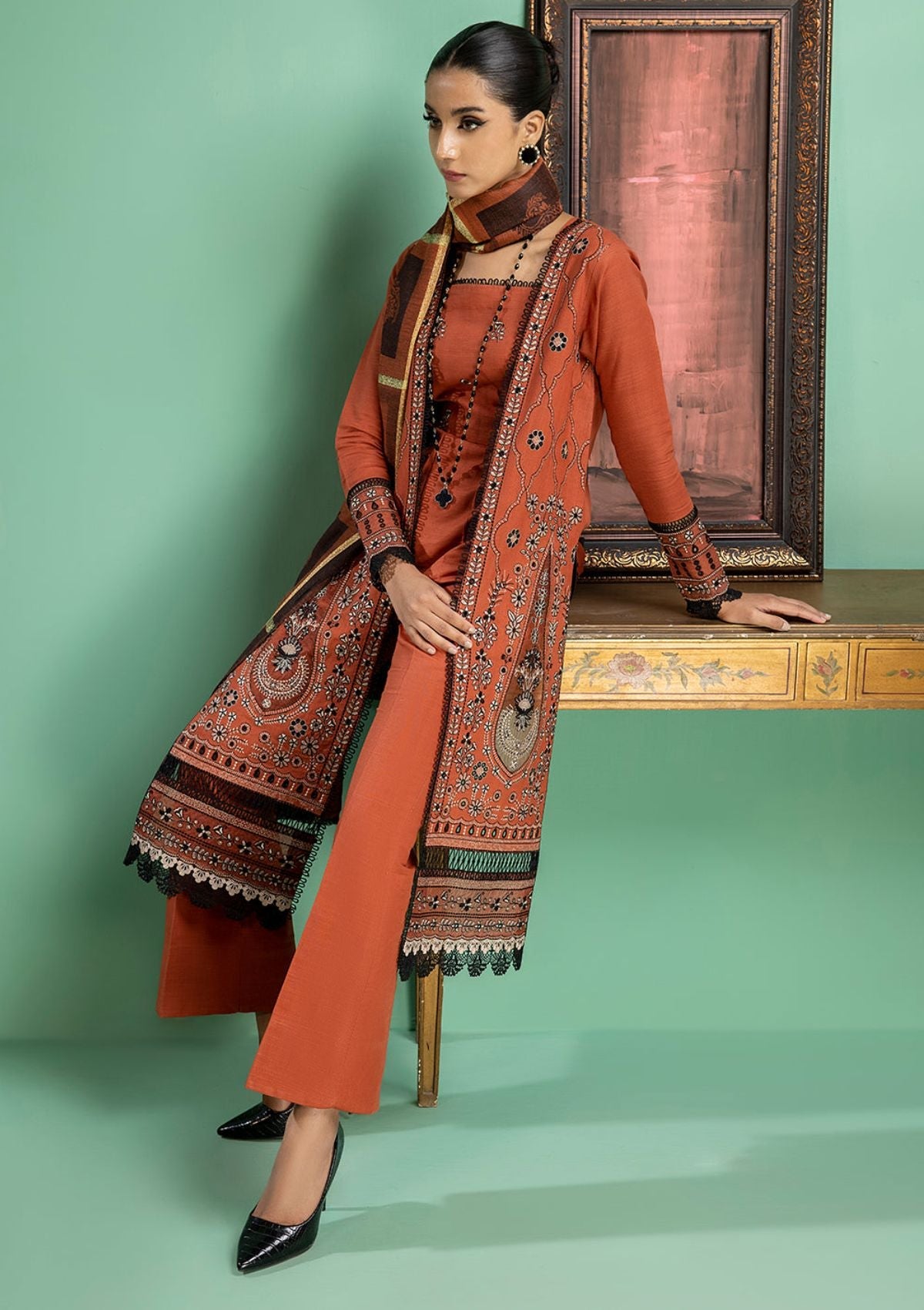| Khaddar Borer Embroidered Left & Right Penal | 2 Piece |