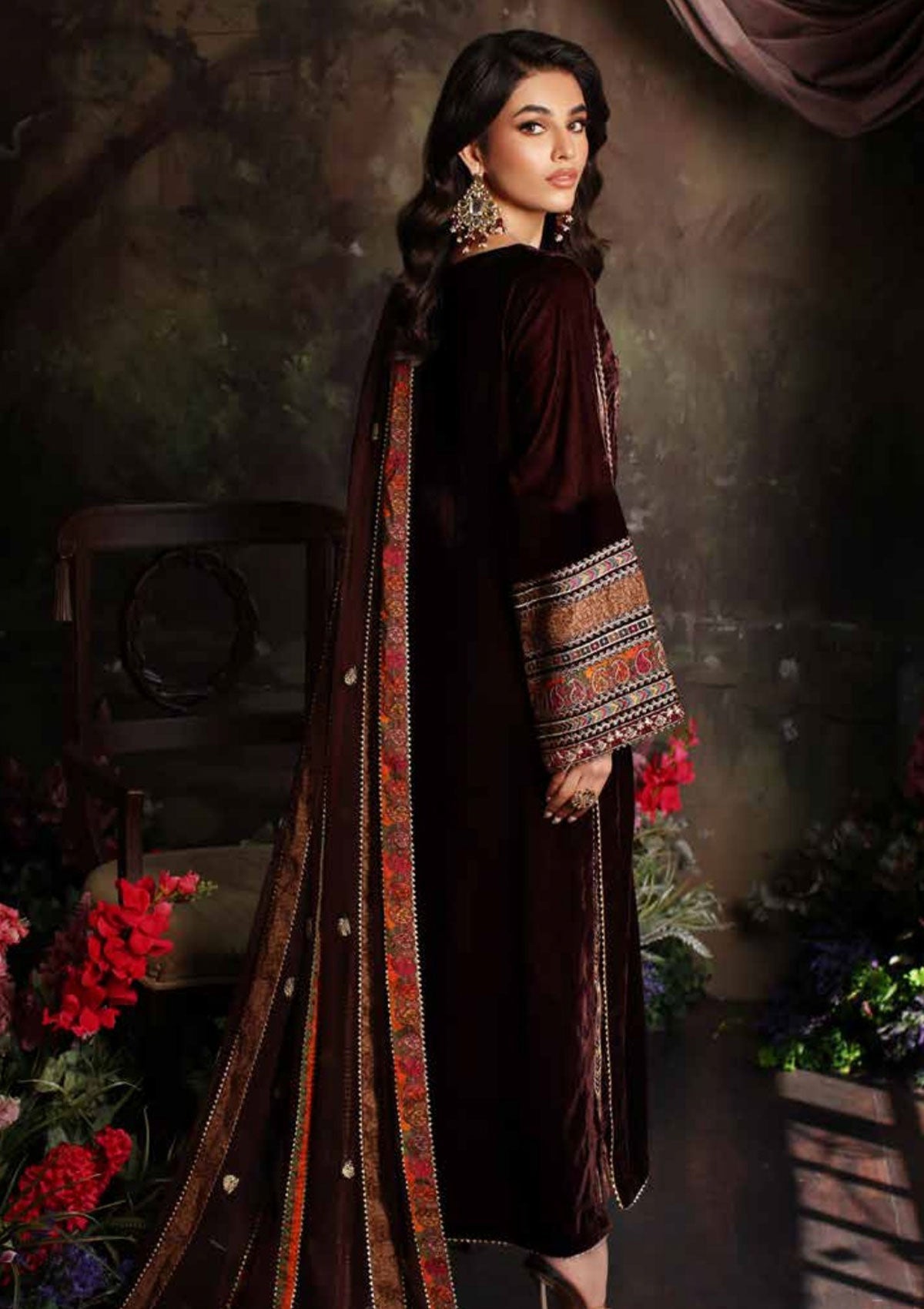 - Unstitched Embroidered Velvet Suit with Embroidered Chiffon Dupatta