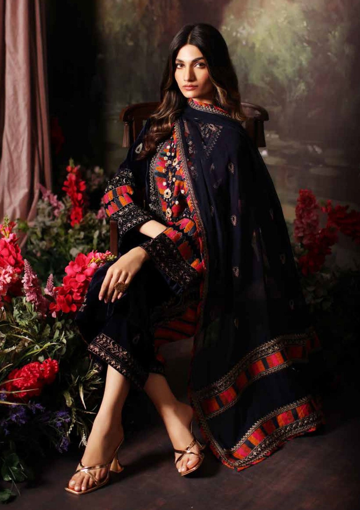 - Unstitched Embroidered Velvet Suit with Embroidered Chiffon Dupatta