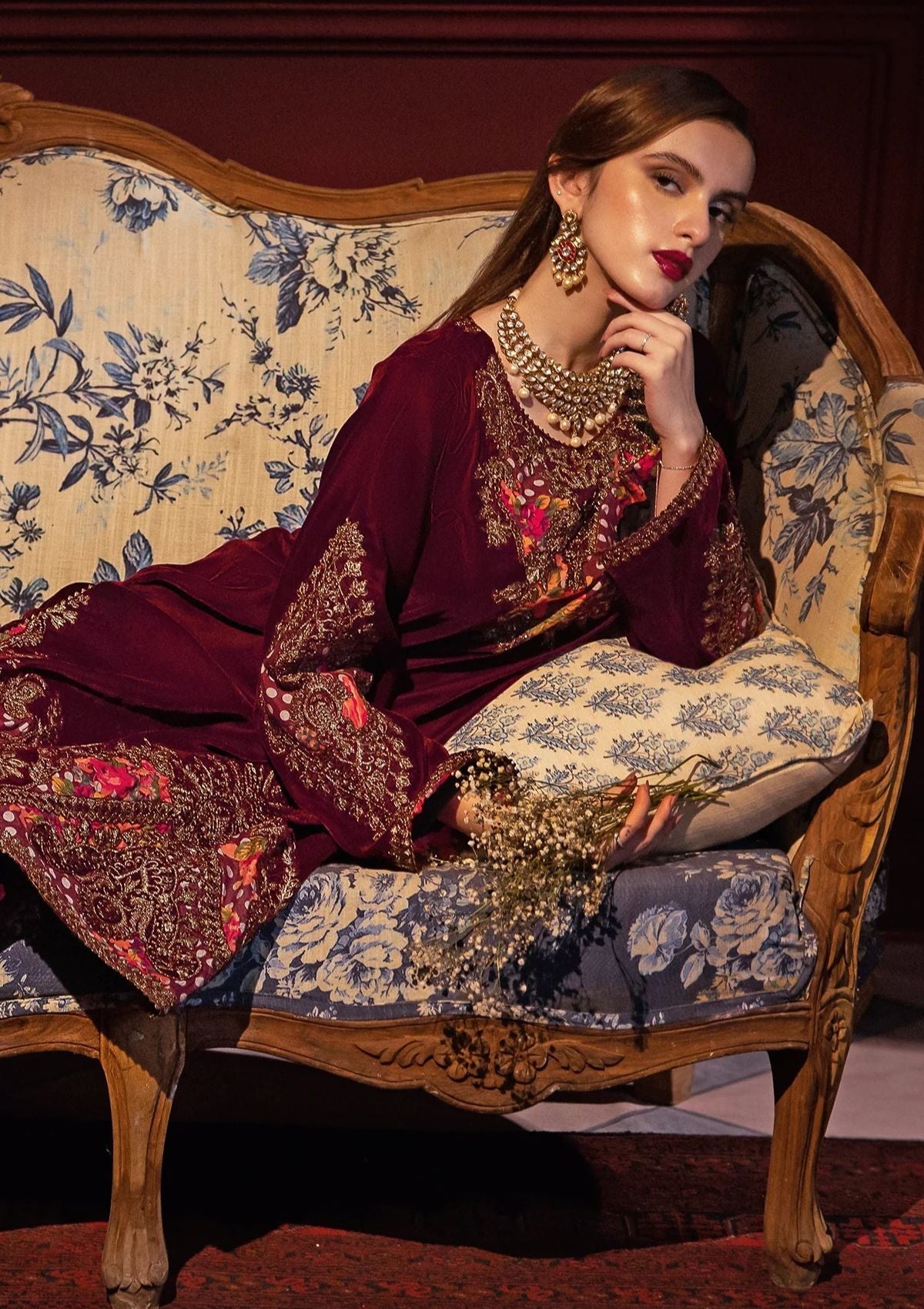 Embroidery Dyed Velvet Front 1.25 Mtr