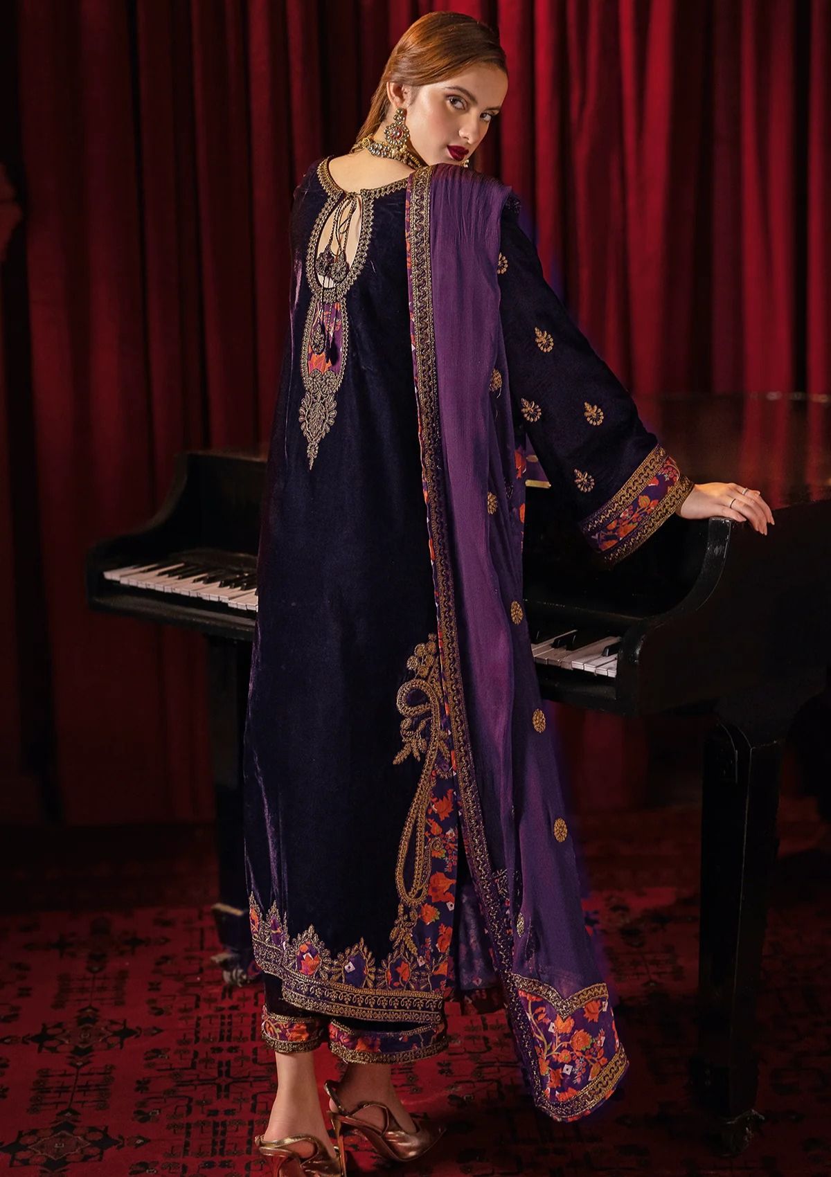 Embroidery Dyed Velvet Front 1.25 Mtr