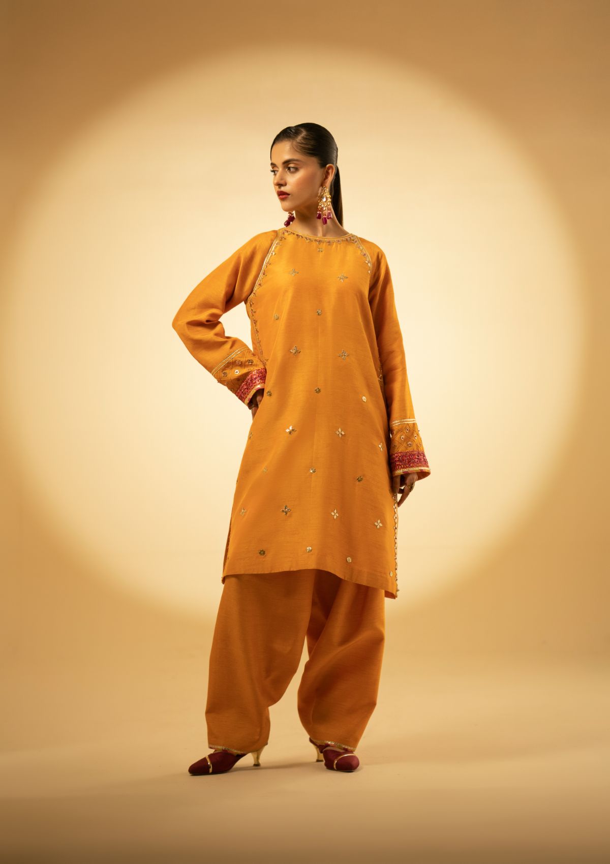 - Elevate your style and embrace the artistry of Eastern fashion with the 'Luxe Amber.' This outfit is a celebration of tradition and contemporary elegance, making a statement with its rich Mustard hue