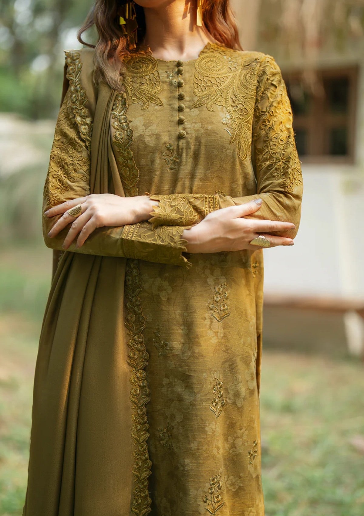 - Shirt Front & Back: Embroidered Slub Khaddar