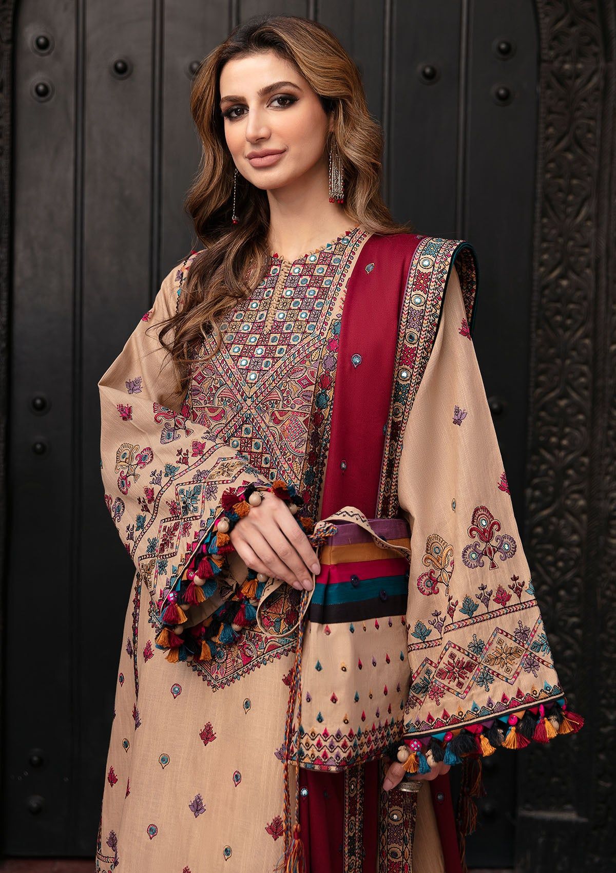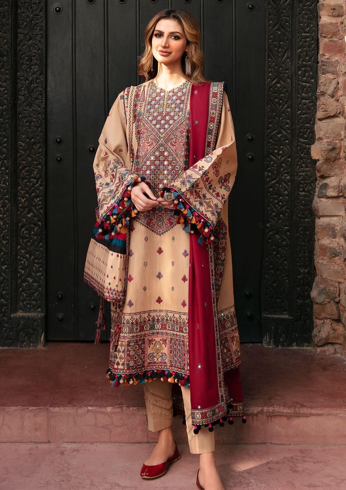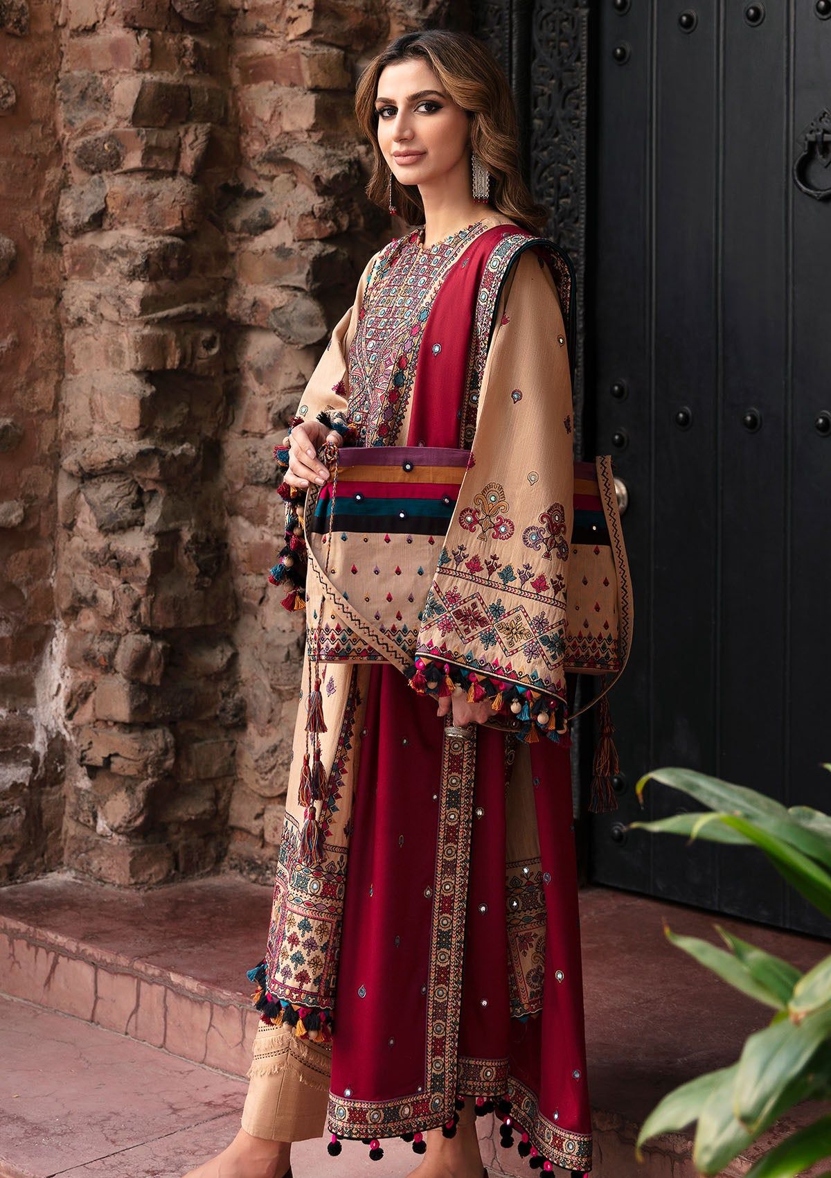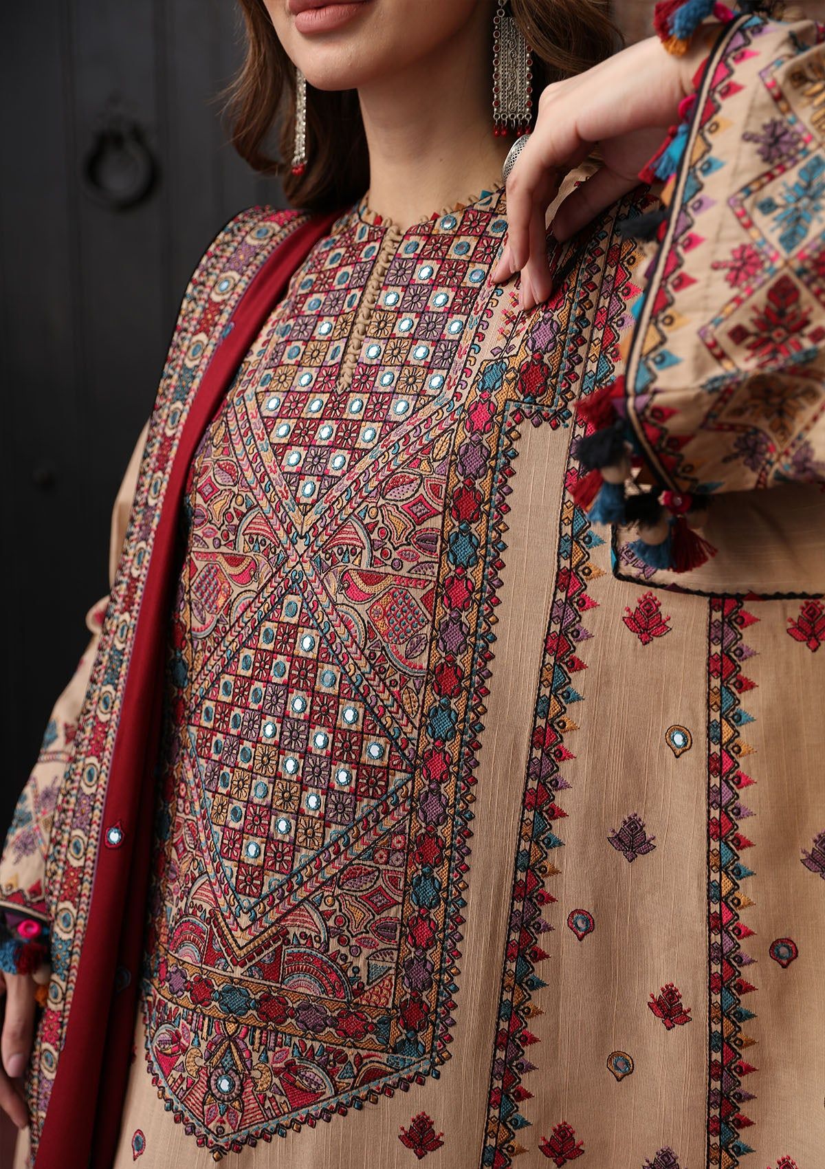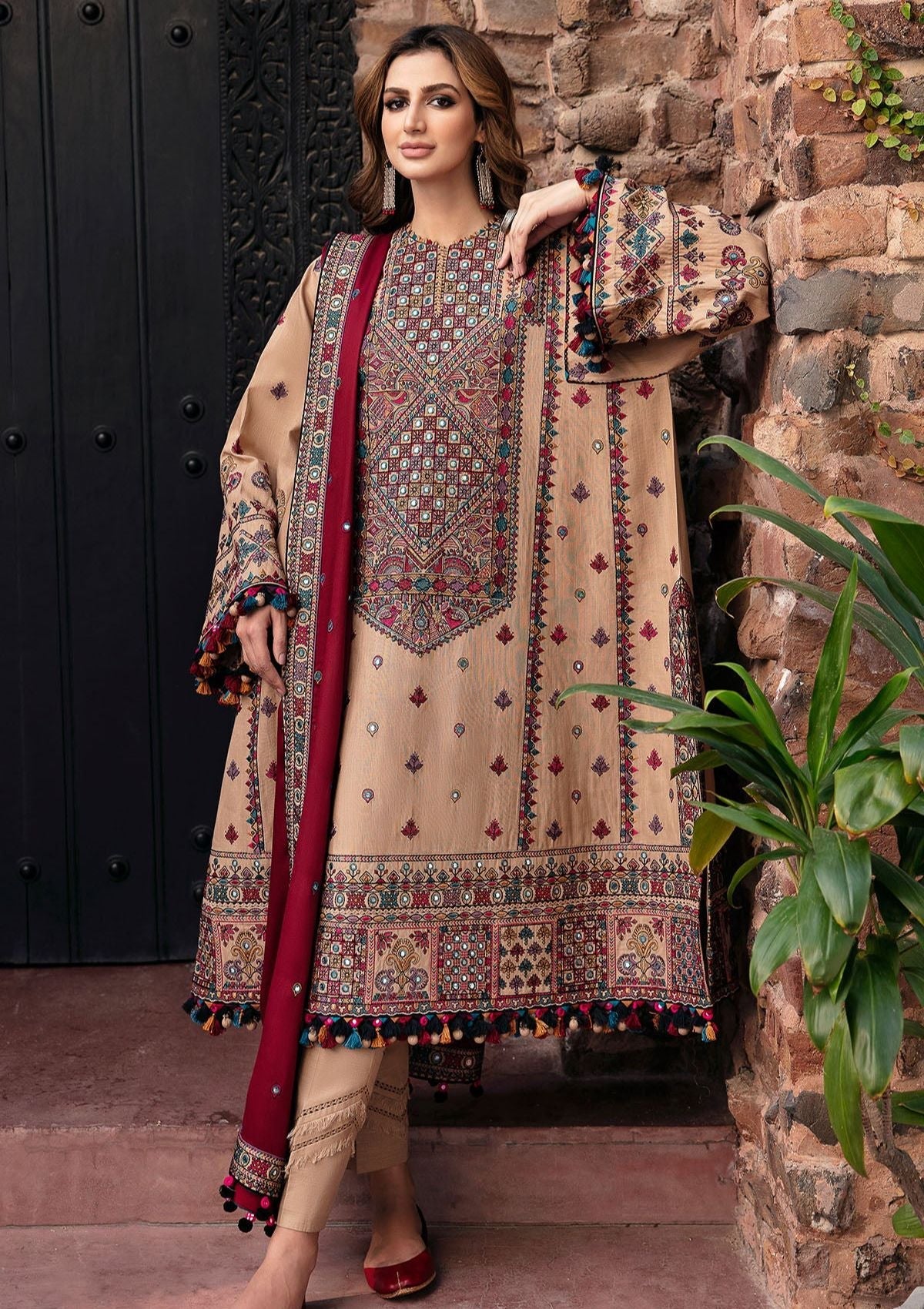 - EmbroideredSlub Khaddar Front PanelEmbroidered Slub Khaddar Font Side PanelsEmbroideredSlub Khaddar SleevesEmbroidered Front, Back & Trouser BorderEmbroideredChawk BorderEmbroidered Viscose Twill Shawl