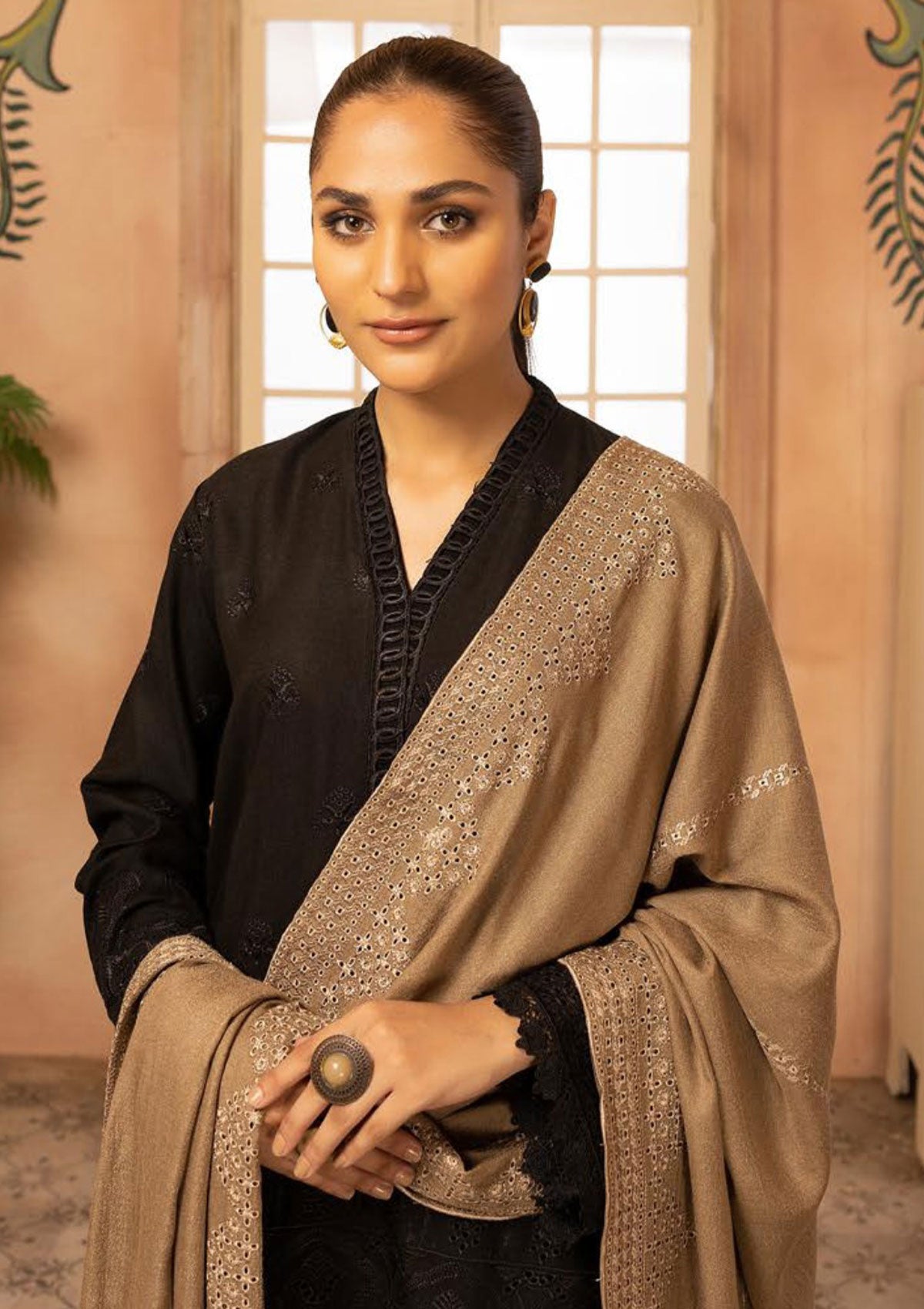 - Embroidered Chikankari Wool Shawl