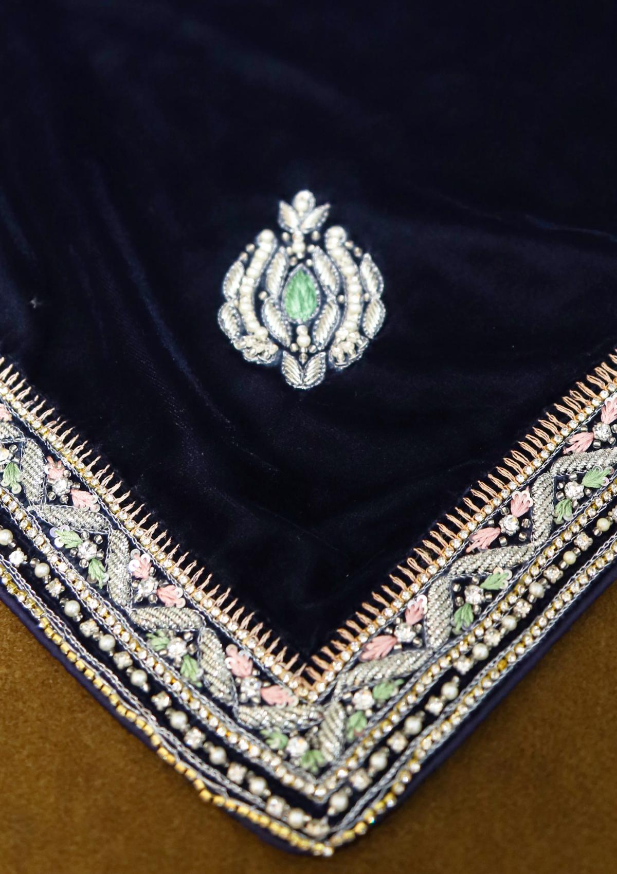 Winter Collection - Kashmiri Tanka - Velvet Shawl With Tilla Border - Work 1