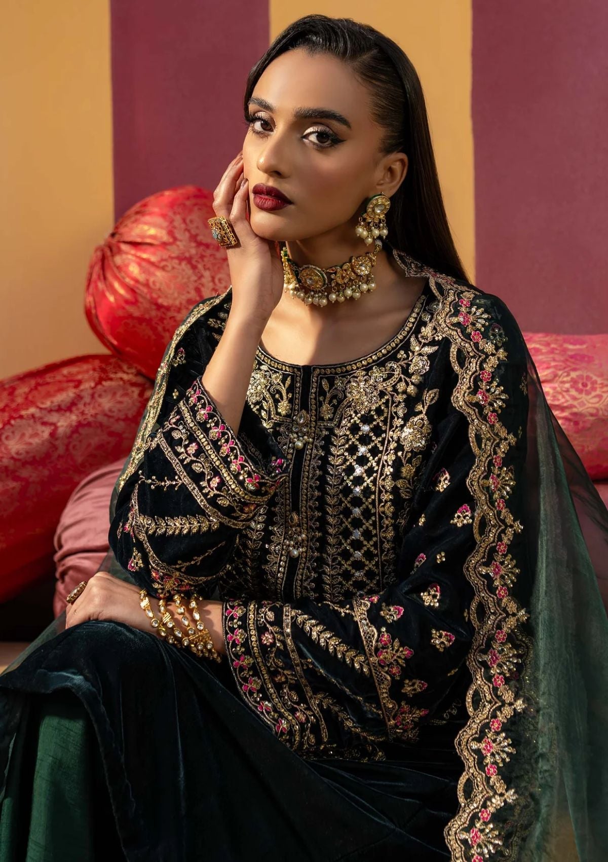 - Dyed Velvet Front Side Panels & Back 2 Meter