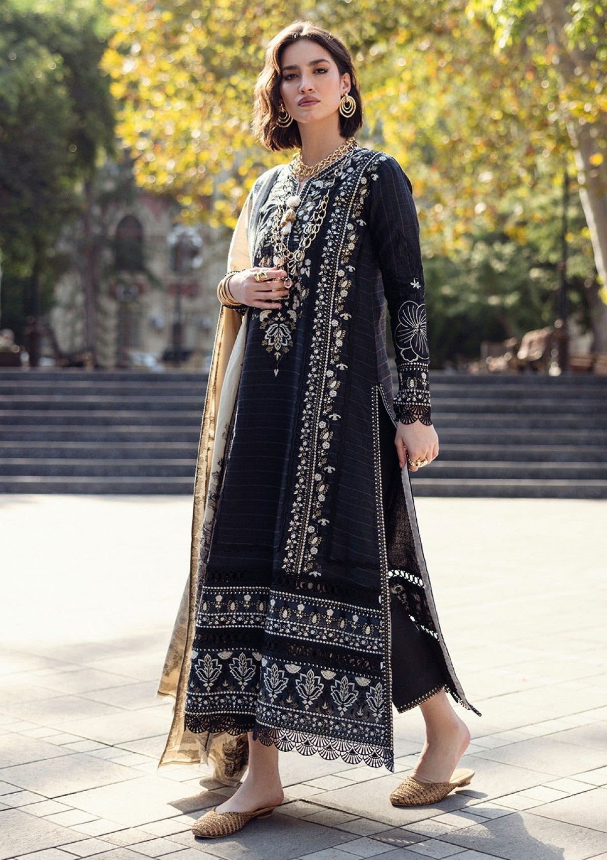 - Embroidered front and back daman border (silk)
