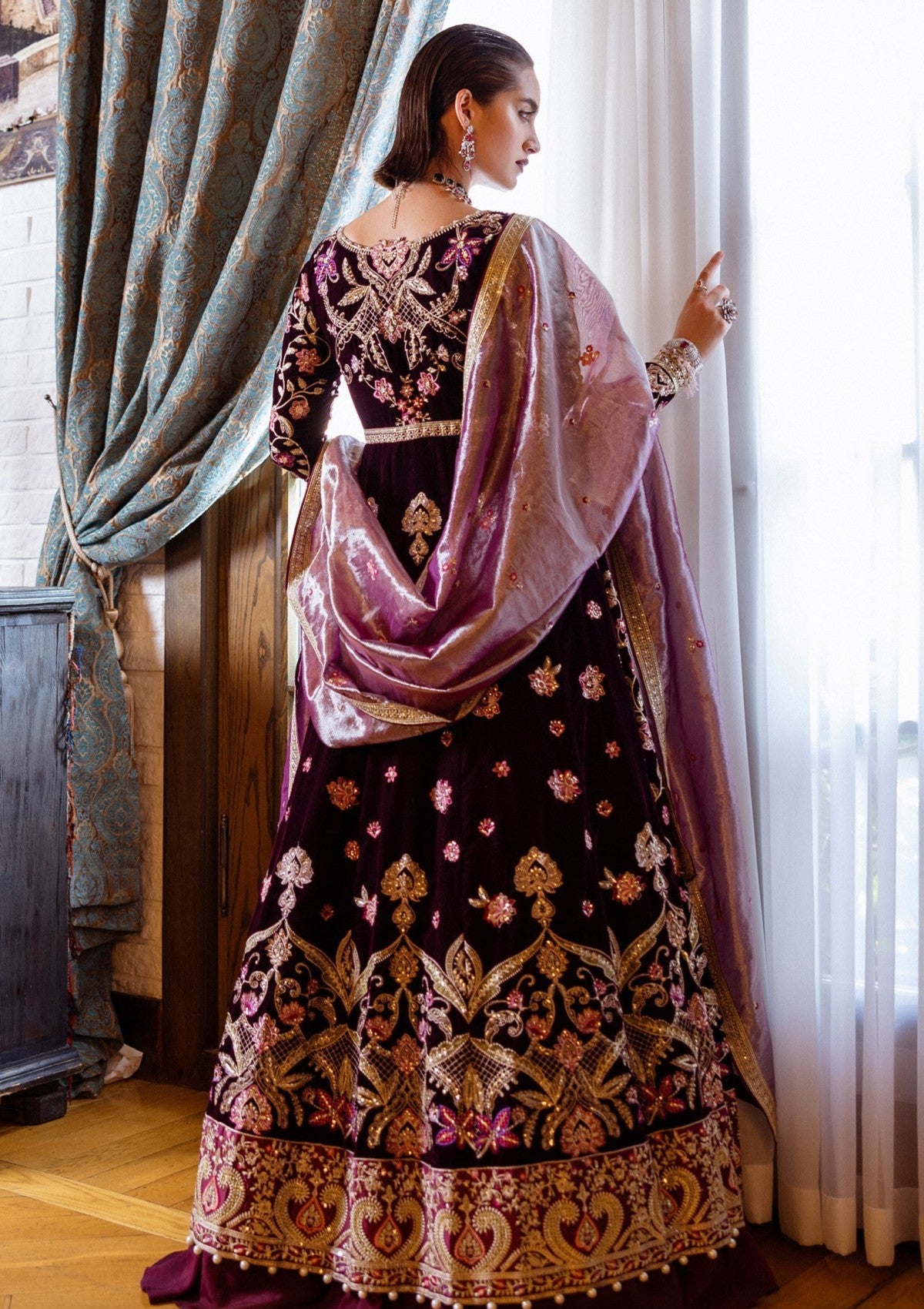 - Embroidered, sequinned and hand embellished velvet for front yoke