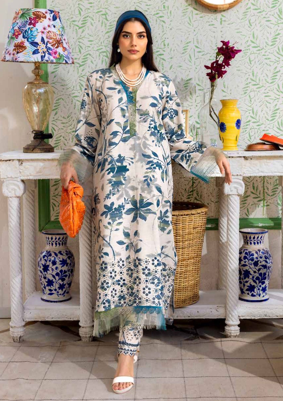 - Printed And Embroidered Chikankari Khaddar Trouser