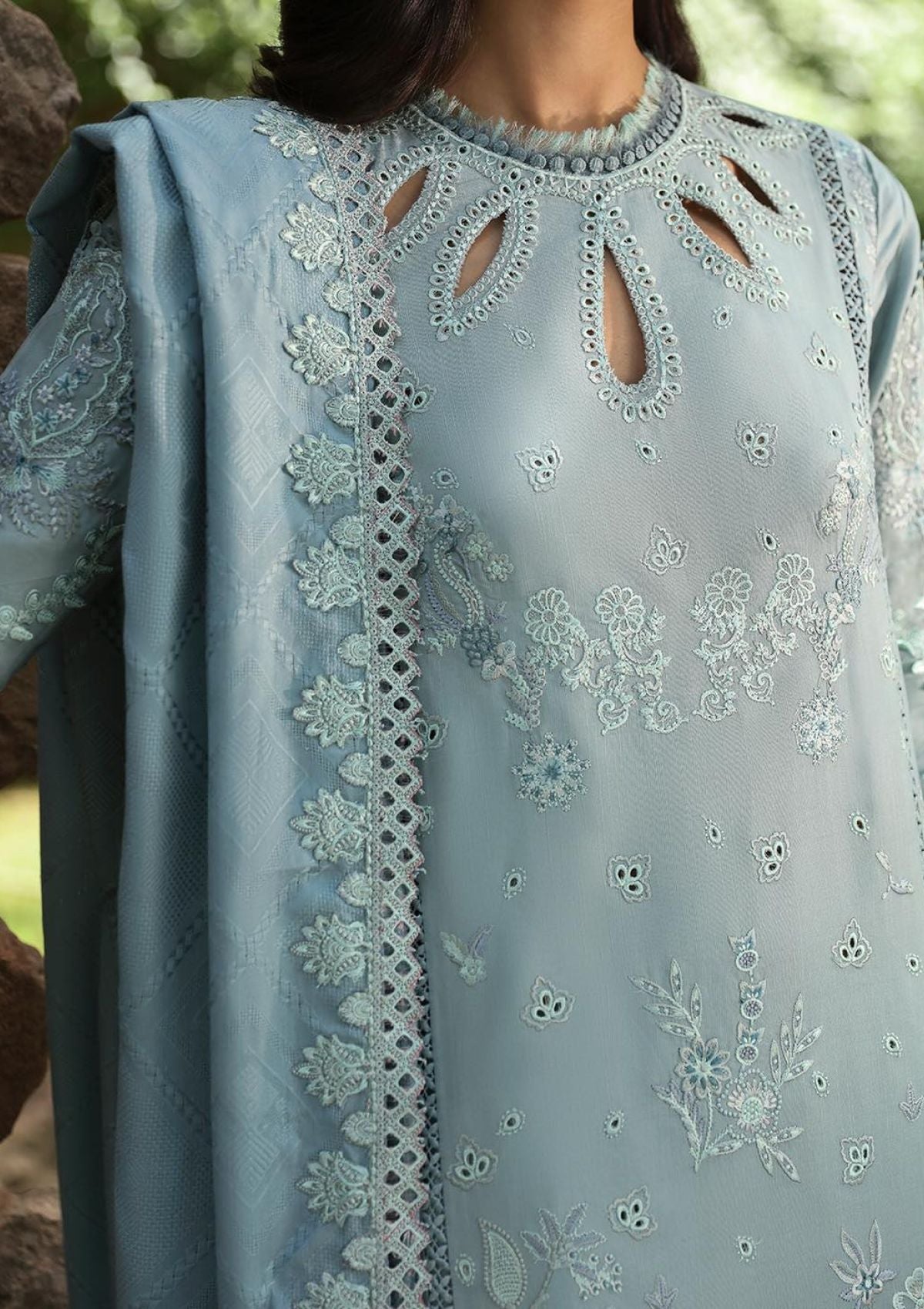 - Chikankari Embroidered Border (Front & Back)