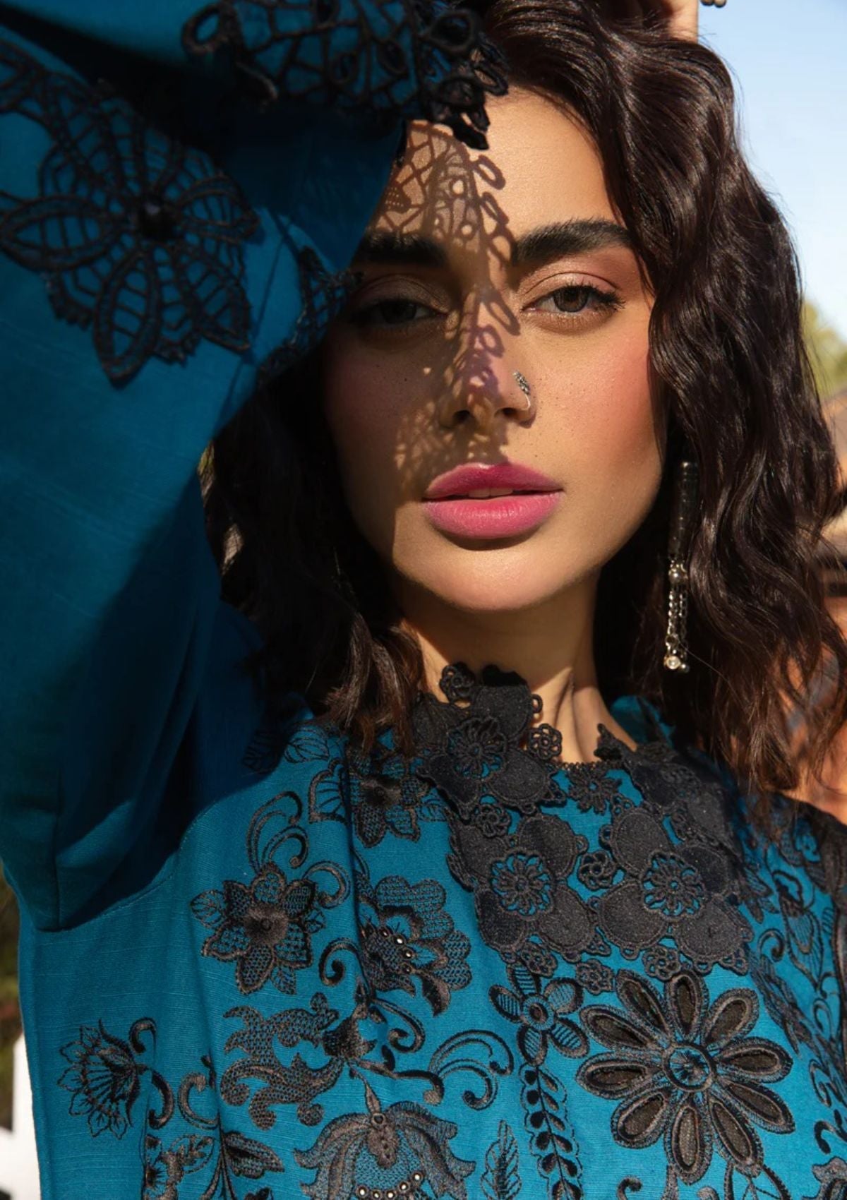 - Schiffli embroidered shirt front on dyed khaddar 1.25 yard