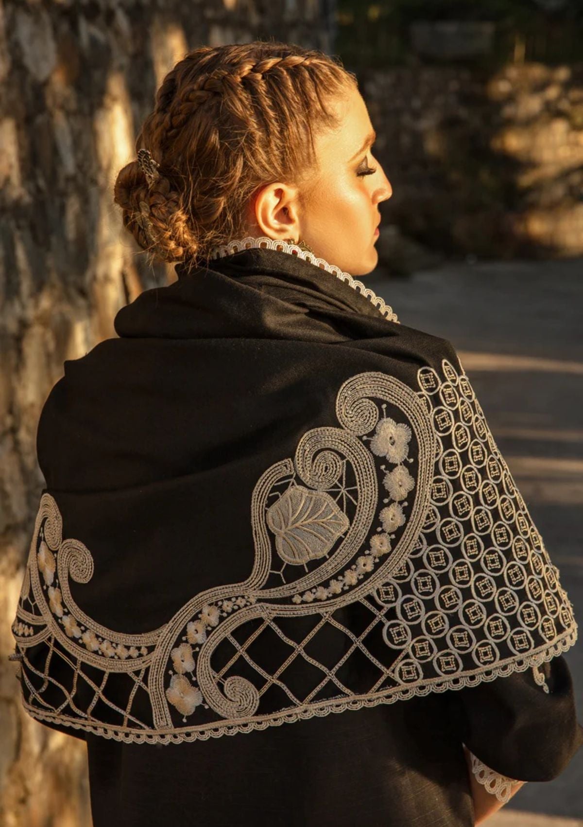 - Embroidered shirt shoulder motif on dyed organza 2 pair