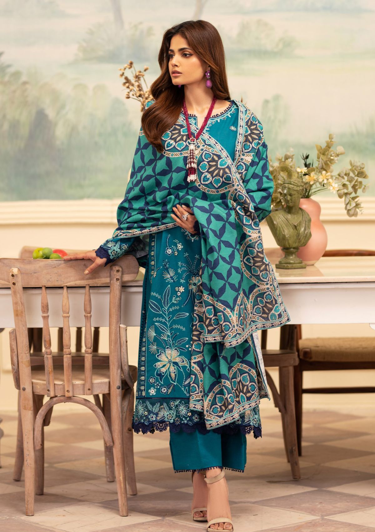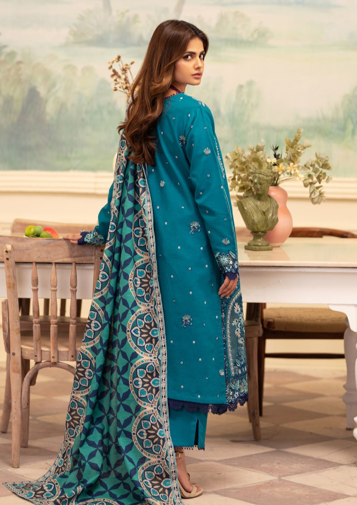 - Embroidered Khaddar Back and Sleeves
