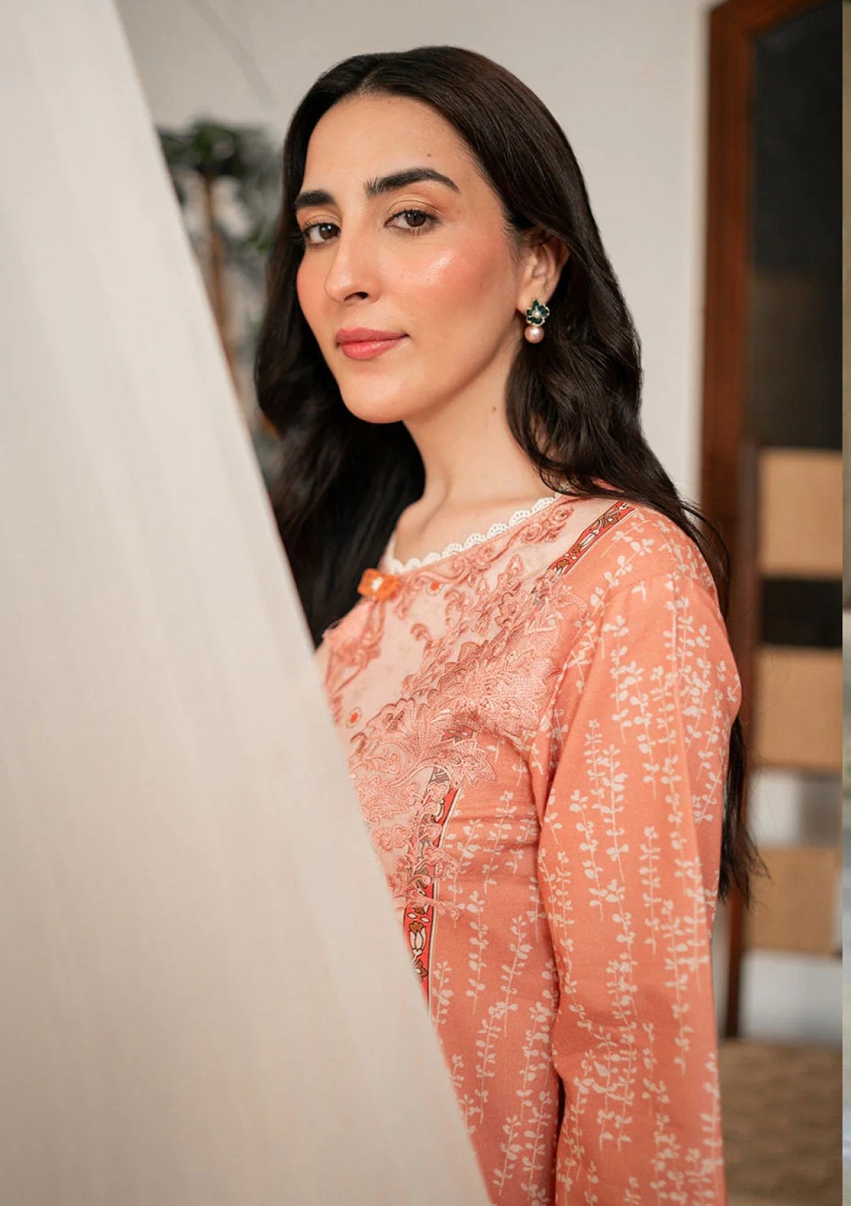- Embroidered Neckline Organza