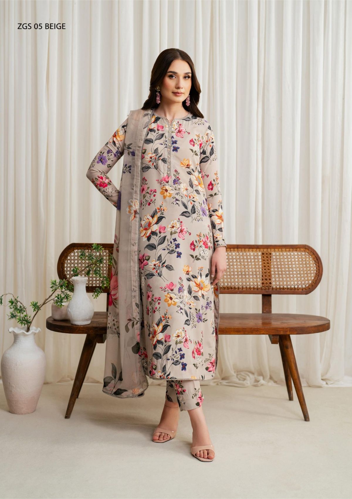 Winter Collection - Zarif - Prints - Georgette Silk - D#05 - Beige