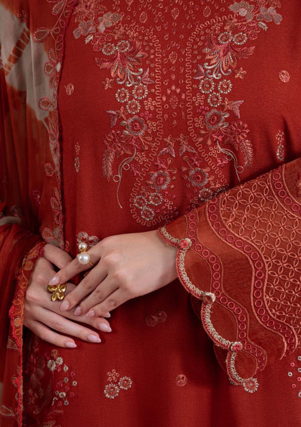 - Embroidered Stitched Chiffon Dupatta