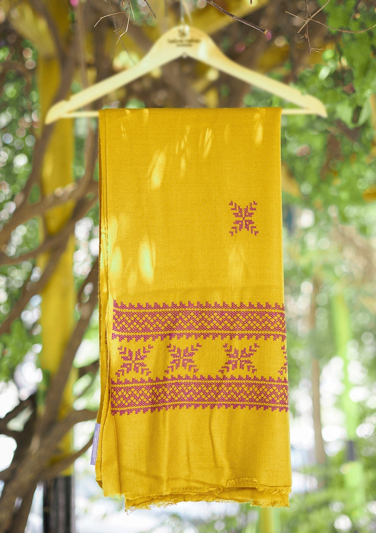 Wool Needle Work Shawl D - 50 - Mustard