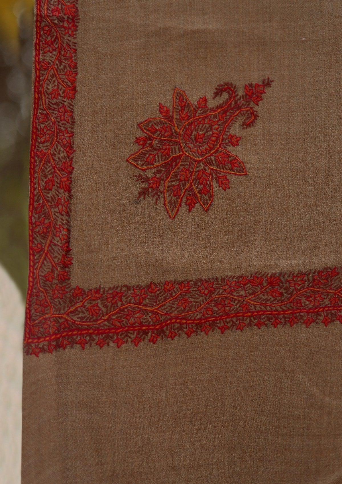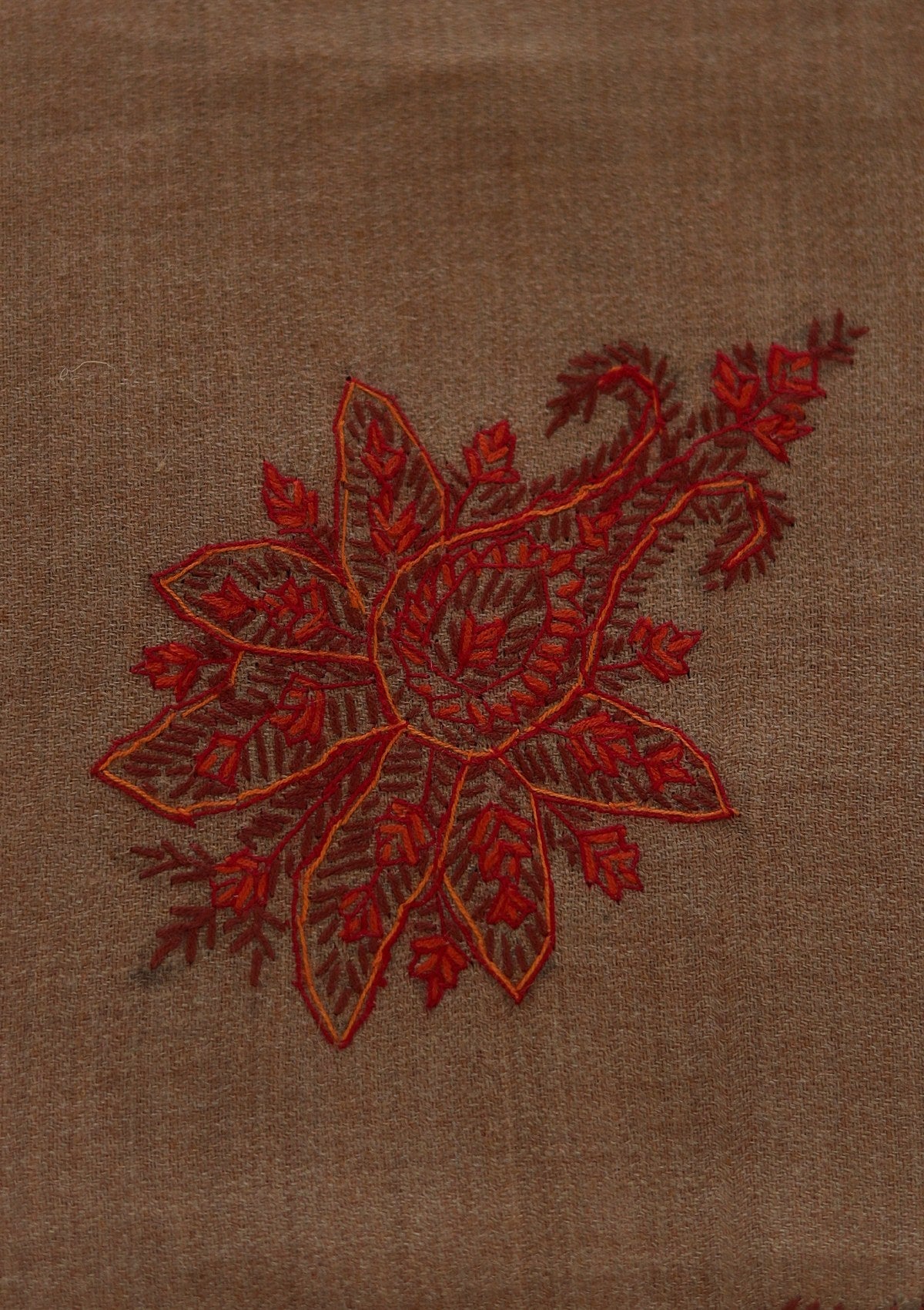 Wool Needle Work Shawl D - 69 - Brown